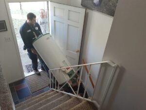 Simon and Paul from Lochinvar, at our home to pick up the waterheater.